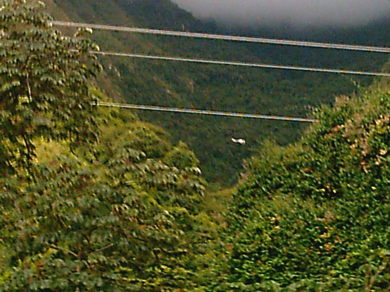 09:36 HLV: se inicia la maniobra dentro del cañón de la Qda Caurimare, dejando con éxito, al sargento Márquez y el material en el fondo de la quebrada para preparar la extracción de los efectivos y de él mismo. Se aprovecha una vez mas para evaluar cuanto se puede descender en el helicóptero dentro del cañón para evitar una eslinga muy larga, logrando finalmente ganar unos diez (10) metros de lo inicial.